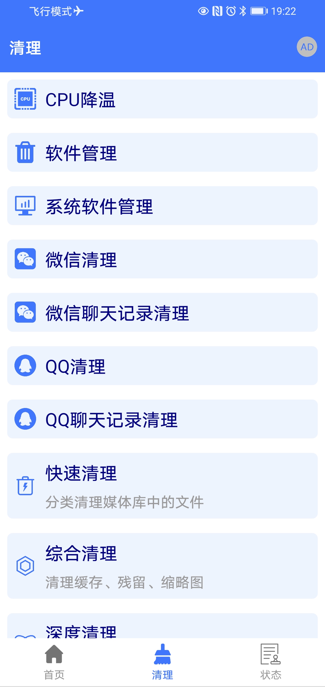 3、深度清理,微信、QQ清理,媒体库清理,清理缓存残留缩略图,清理及打开图片、视频、音频、大文件、APK包,清理通知。
